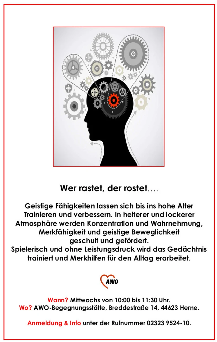 Der AWO Kreisverband Herne vereint die Herner Ortsvereine der AWO und bietet in seinen Begegnungsstätten auf ehrenamtlicher Basis Veranstaltungen und Kurse zu vielfältigen Themen in den Bereichen soziales Gemeinwesen, Kultur, Freizeit und Bildung an. Die Förderung bürgerschaftlichen Engagements ist uns ein zentrales Anliegen.